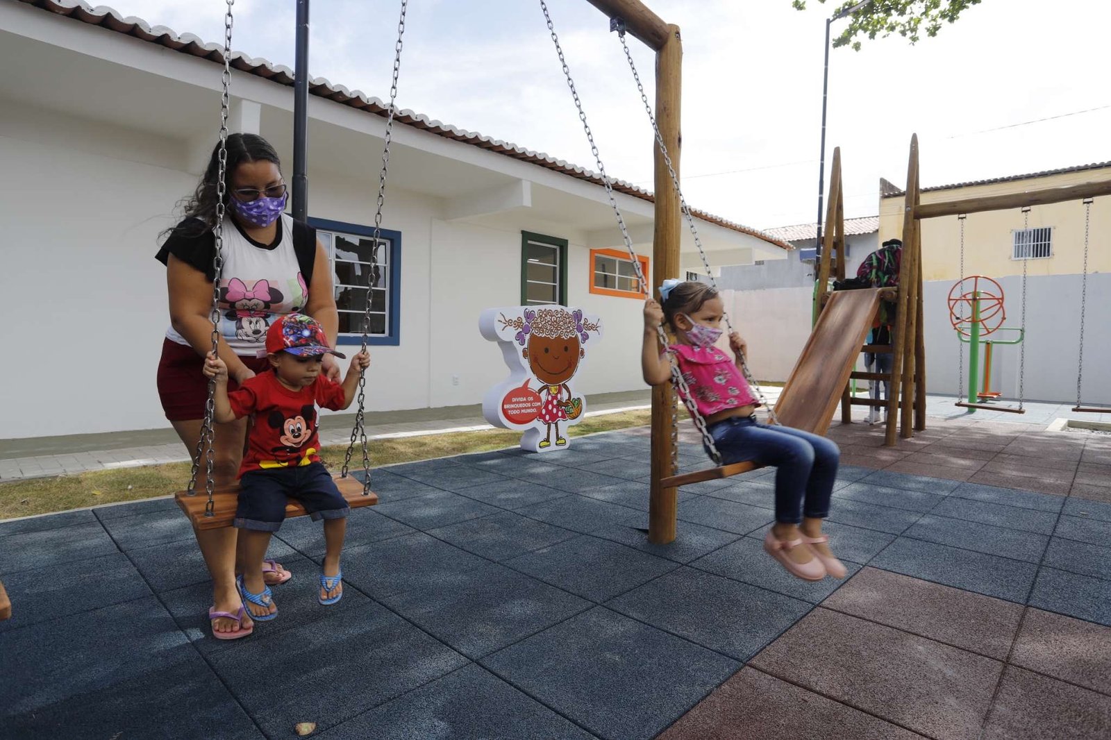 Já as crianças menores podem brincar e aprender em espaços como a brinquedopraça e a biblioteca.