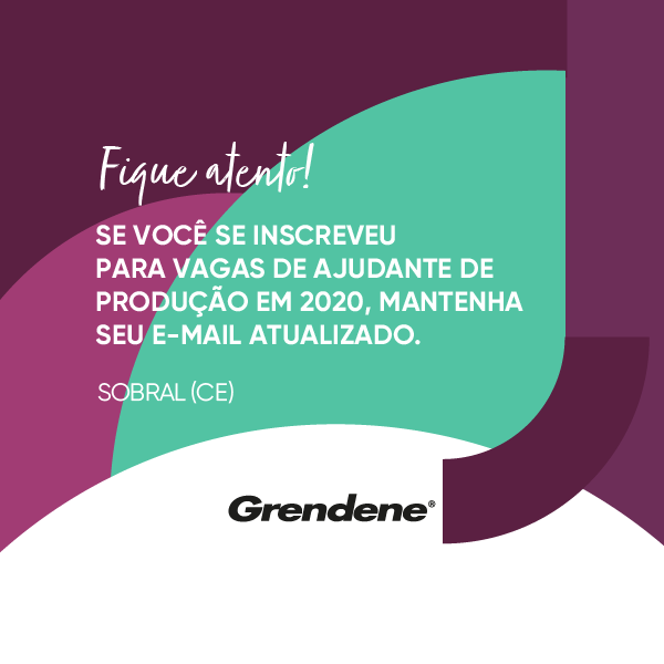 É pelo seu e-mail de inscrição que você receberá todas as informações sobre o processo seletivo. Ele será o seu principal canal de comunicação conosco, por isso, é importante mantê-lo sempre atualizado. Se for necessário realizar alteração, acesse www.facapartegrendene.com.br