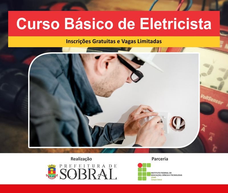 De 20 de fevereiro a três de março, estão abertas as inscrições para o 1º Curso Básico de Eletricista. Com acesso gratuito e vagas limitadas, a formação possui carga horária composta por 40 horas/aula e acontecerá entre os dias 6 e 17 de março, no Centro de Convenções de Sobral – parte teórica, e no Instituto Federal de Educação, Ciência e Tecnologia do Ceará (IFCE) a prática.