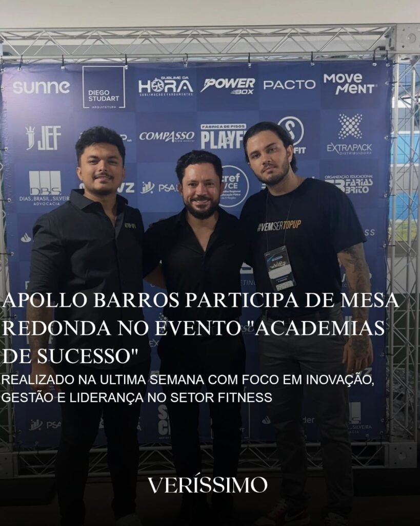 Com uma abordagem elegante e inspiradora, o CEO reforçou a importância de manter propósito, consistência e visão de longo prazo para transformar academias em negócios sólidos e em constante evolução. A presença de Apollo Barros reafirma o protagonismo da TOP UP no cenário regional e sua contribuição para o fortalecimento do setor como um todo.*Apollo Barros participa de mesa redonda no evento “Academias de Sucesso”*