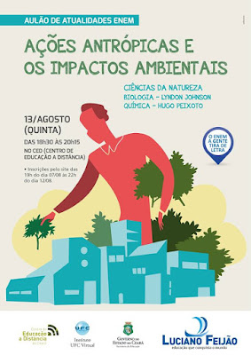 Uma parceria entre o Colégio Luciano Feijão e o Centro de Educação a Distância do Ceará irá proporcionar que cerca de 10 mil alunos da rede pública estadual, de todos os 184 municípios cearenses, possam participar do Aulão de Atualidades do Enem 2015, que abordará o tema “Ações atrópicas e os impactos ambientais”, que acontecerá na próxima quinta-feira, 13 de agosto, das 18h30 as 20h.