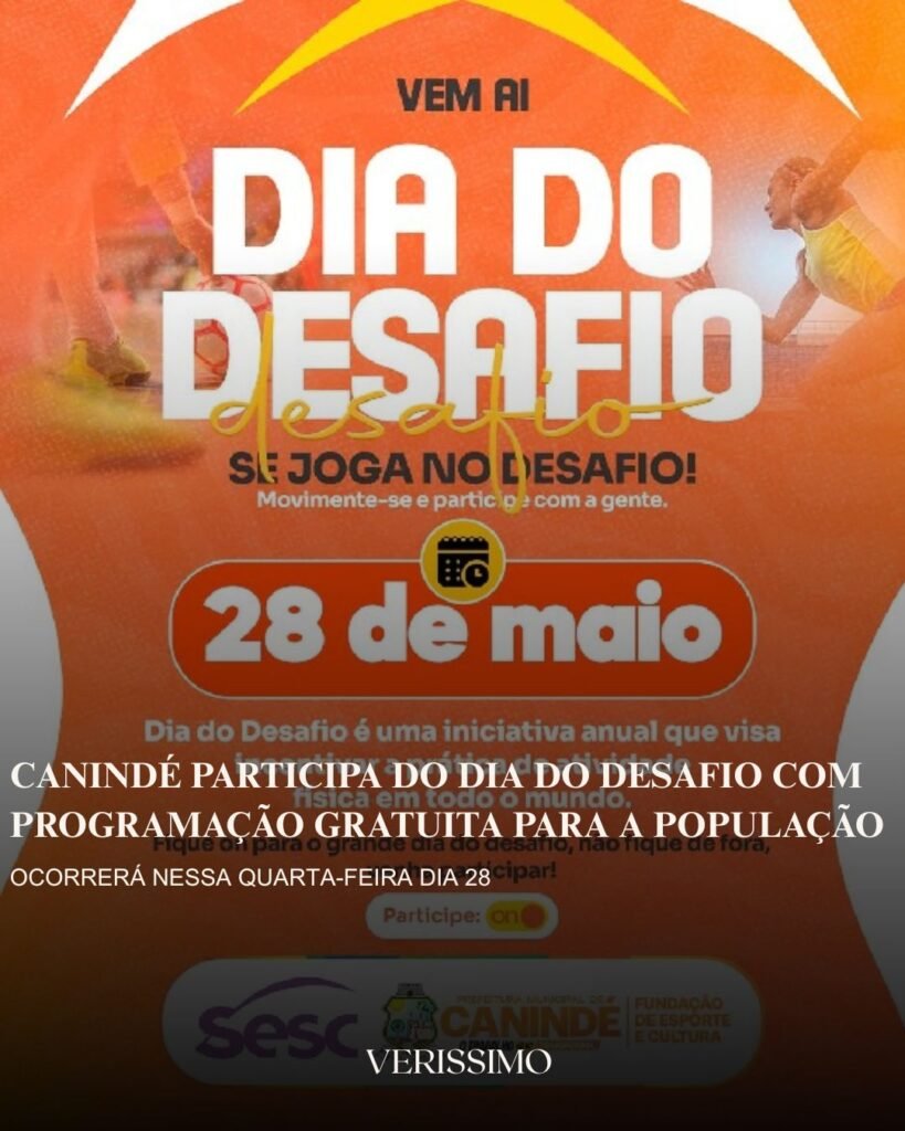 Nesta quarta-feira, (28), Canindé se junta a centenas de cidades do mundo inteiro na mobilização do Dia do Desafio, iniciativa internacional que promove a prática regular de atividades físicas e a adoção de hábitos saudáveis pela população.