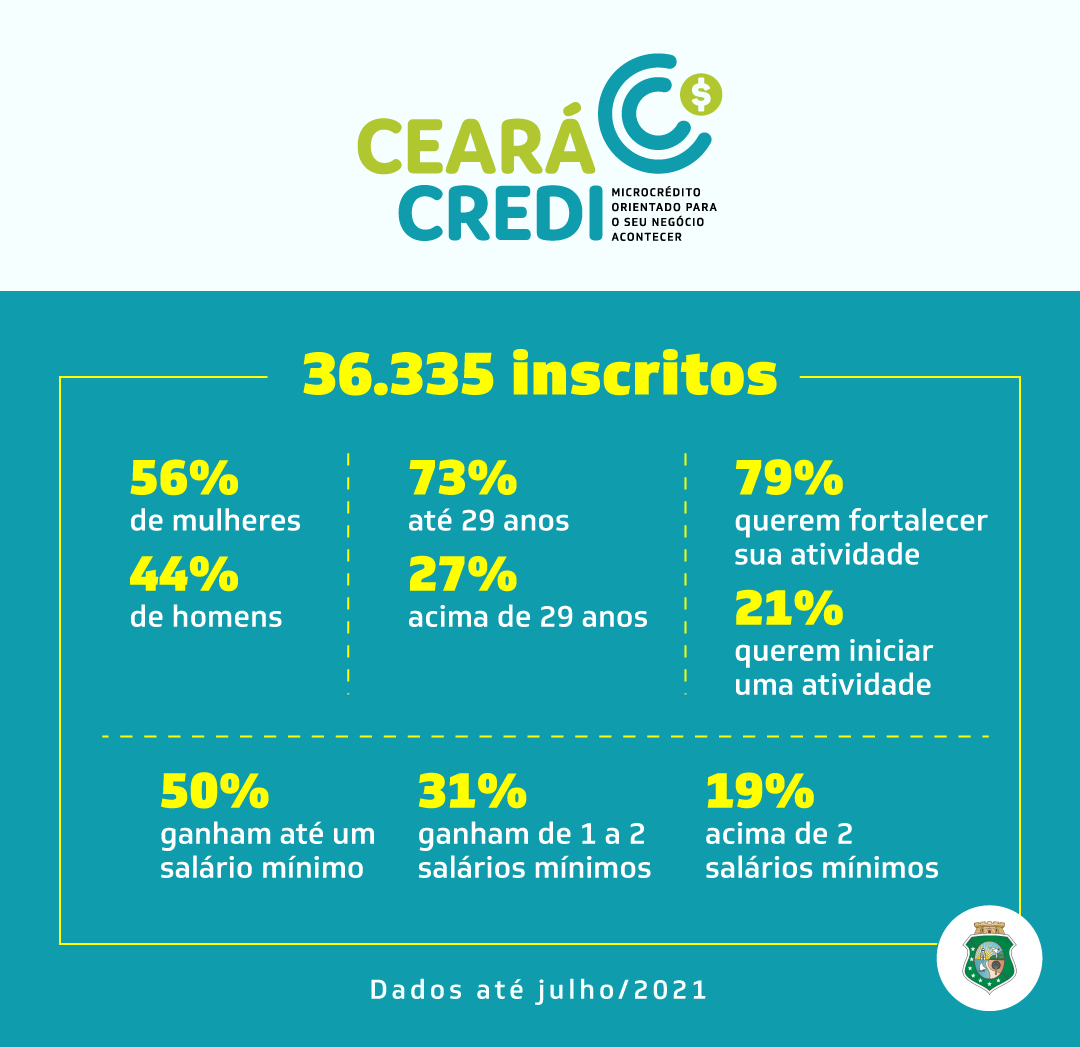 Outras 351 pessoas do município de Itapipoca foram cadastradas no programa Ceará Credi. O número é composto por 48% de mulheres, 45% de homens e 6,5% não identificaram o gênero. Do total, 82% são informais e 18% microempreendedores individuais (MEI). Com PIB per capita de R$ 12,8 mil, Itapipoca tem média salarial mensal de R$ 1,5 mil dos trabalhadores formais. O setor de serviços é considerado a maior parte da atividade local, com 43% da parcela total. Neste cenário, uma das alternativas de trabalho e renda são os pequenos negócios, destacando-se a importância do acesso ao crédito por parte de empreendedores dos diversos ramos de atividade.