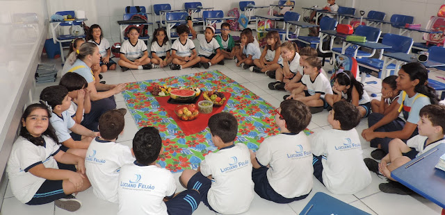 Sob a orientação das professoras Ticiana Brito e Isadora Lopes, as crianças saborearam porções de maçã, melancia, melão, além de uvas, laranjas e bananas. Antes do início da comilança saudável, a professora Ticiana Brito explica as vantagens de uma alimentação saudável para um crescimento com saúde. “Esta é a proposta do colégio, mostrar que desde muito cedo a criança que tem o hábito de comer alimentos saudáveis será um adulto com poucos problemas de obesidade”, diz a professora.