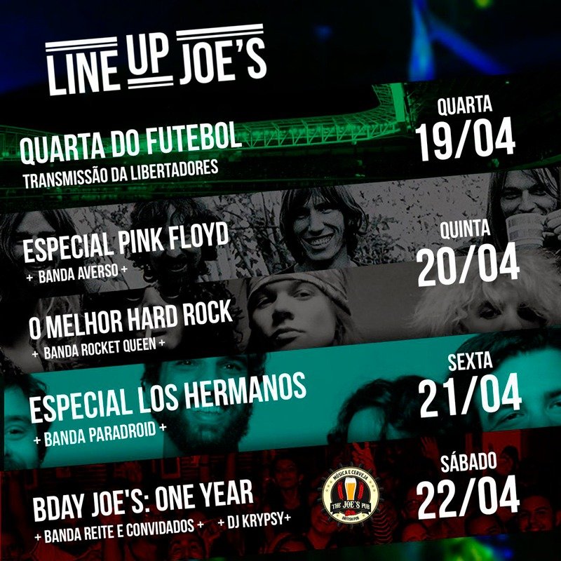 O The Joes Pub traz a boa musica com Especial Los Hermanos e BDay Joe’s. O melhor do Rock mundial!