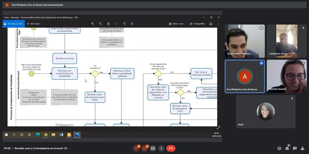 Na reunião, que ocorreu de forma virtual, a controladora de Aracati, Mariana Costa, e o advogado Randerson Lemos conheceram a estruturação dos manuais de aplicação de penalidades em processos licitatórios, elaborados pela CGM de Sobral, que estão disponíveis no site da Controladoria e Ouvidoria Geral do Município.