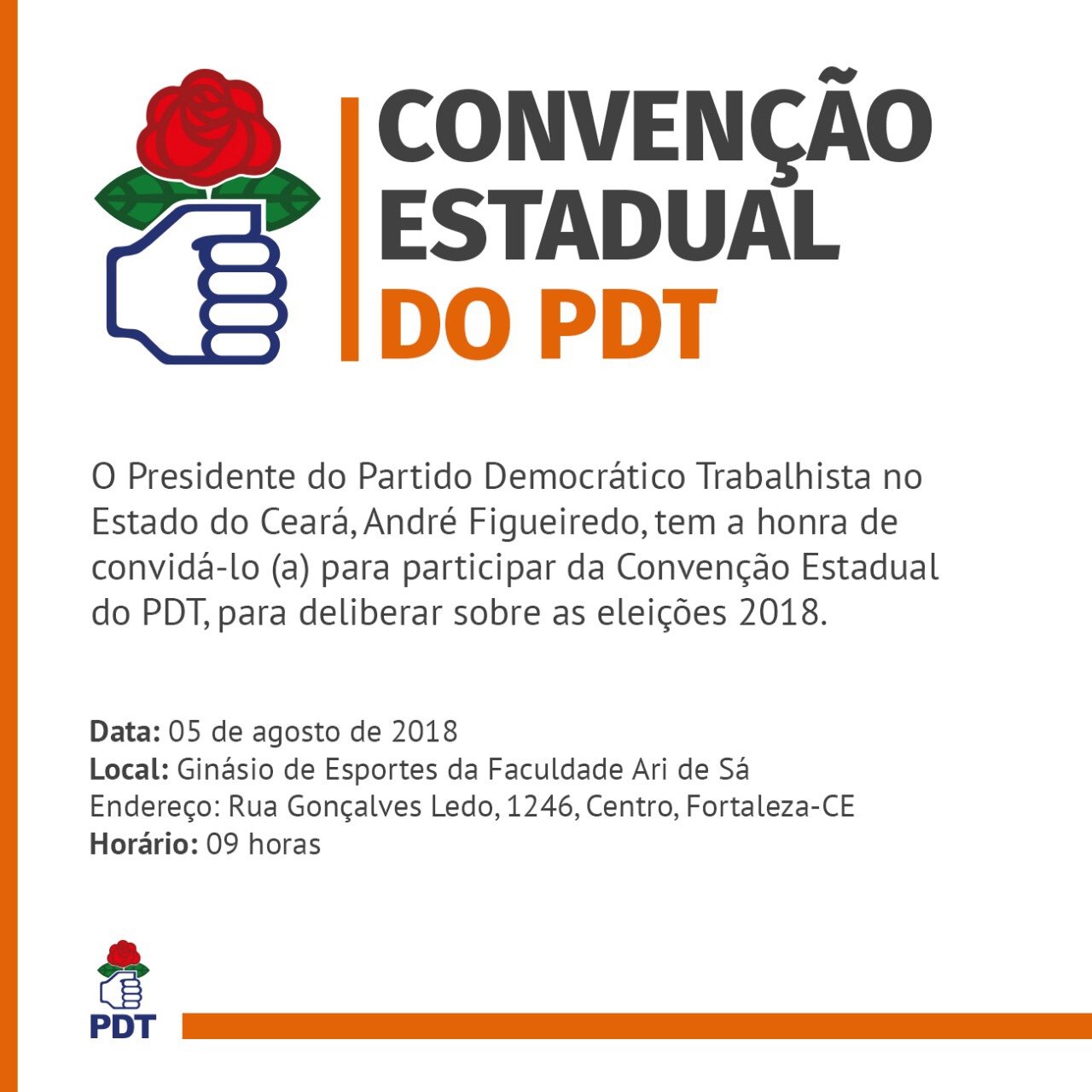 A convenção estadual do PDT deve confirmar no próximo domingo (05/08) o apoio à reeleição de Camilo Santana ao Governo do Estado e o nome do ex-governador Cid Gomes para a disputa de uma das vagas ao Senado. O partido pretende manter o nome da Professora Izolda Cela na vaga de vice-governadora.