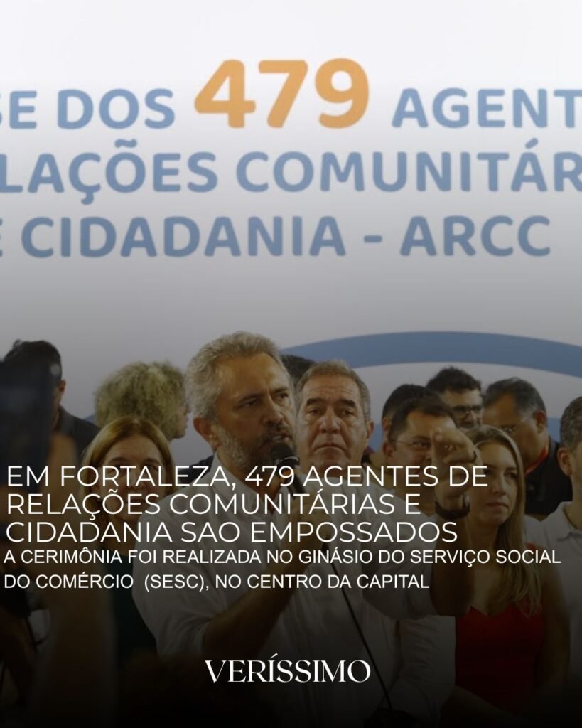 Neste sábado (9), o governador Elmano de Freitas participou, ao lado do prefeito de Fortaleza, Evandro Leitão, da posse dos 479 agentes de Relações Comunitárias e Cidadania (ARCC) eleitos em votação ocorrida entre 19 de maio e 3 de junho. A cerimônia foi realizada no Ginásio do Serviço Social do Comércio (Sesc), no Centro da Capital.