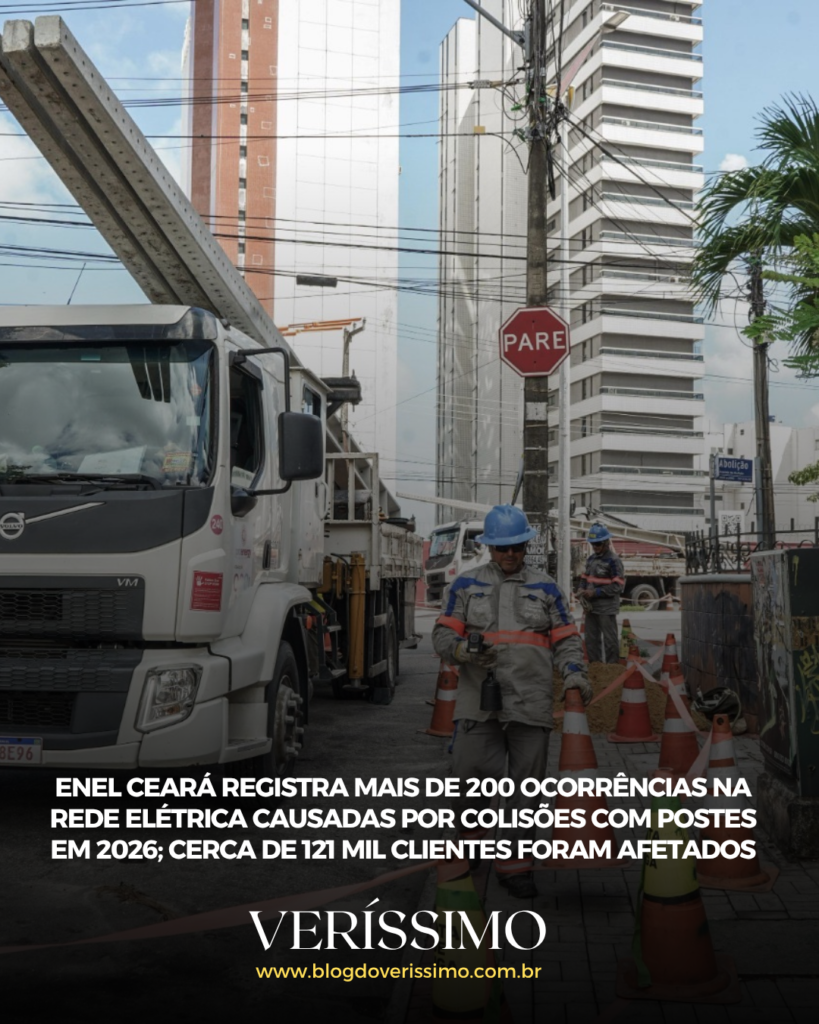 Enel Distribuição Ceará registra alerta: até 15/03/2026, mais de 200 “colisão poste Enel” provocaram “Enel Ceará apagão” para 121 mil clientes no estado. Janeiro teve 103 casos, com Fortaleza (32), Caucaia (7), Beberibe (7), Quixadá (6), Tabuleiro do Norte (6), Itapipoca (6) e Jijoca de Jericoacoara (6) no topo. Esses “acidente poste elétrico” destroem postes e cabos, demandando “restabelecimento energia Enel” imediato. Em 2025, 1.086 incidentes afetaram 719 mil — tráfego e chuvas agravam “queda energia Ceará” em vias críticas.