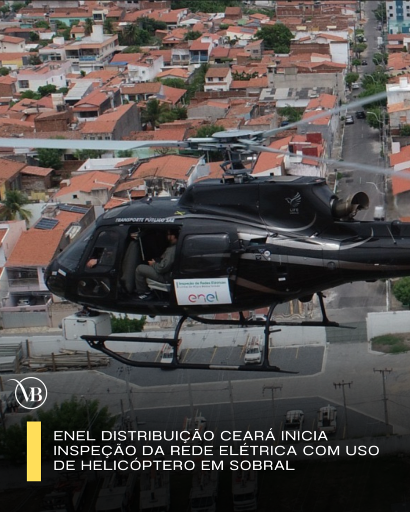 A Enel Distribuição Ceará está iniciando, este mês, um trabalho de inspeção com o uso de helicóptero na rede elétrica, para agilizar as ações de manutenção, especialmente em área rurais, onde a inspeção por terra leva mais tempo. A aeronave está em Sobral esta semana para iniciar o trabalho, percorrendo cerca de 1.041 quilômetros. Além de Sobral, os municípios de Fortaleza, Banabuiú, Caucaia, Crateús, Eusébio, Ibiapina, Icó, Maracanaú, Pacatuba, Russas, Milagres, Quixadá e Tauá também passarão pela inspeção durante o mês de janeiro.