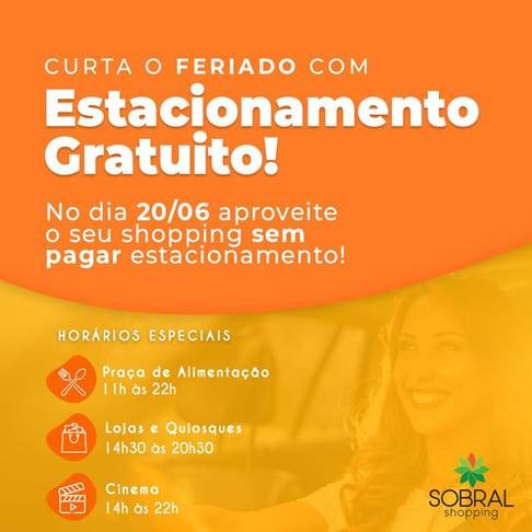 No feriado de Corpus Christi, dia 20 de junho, nossos clientes serão presenteados com estacionamento gratuito durante todo o horário de funcionamento do Sobral Shopping!!