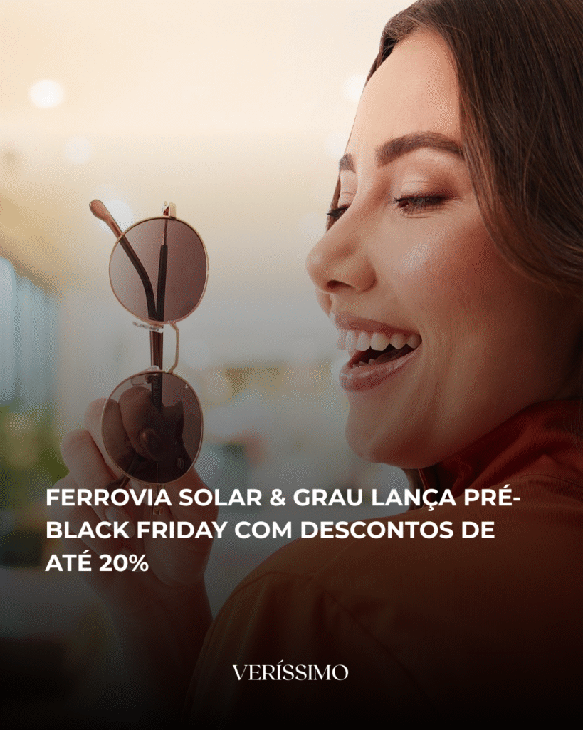 A Ferrovia Solar & Grau anunciou as promoções de fim de ano com uma ação exclusiva para o ambiente digital: a Pré-Black Friday, válida até o dia 22 de novembro. A campanha oferece 20% de desconto em óculos de sol e para clientes que buscam óculos de grau completo: lentes Kodak 10xR$ 49,90. *Consulte regulamento da promoção em loja.
