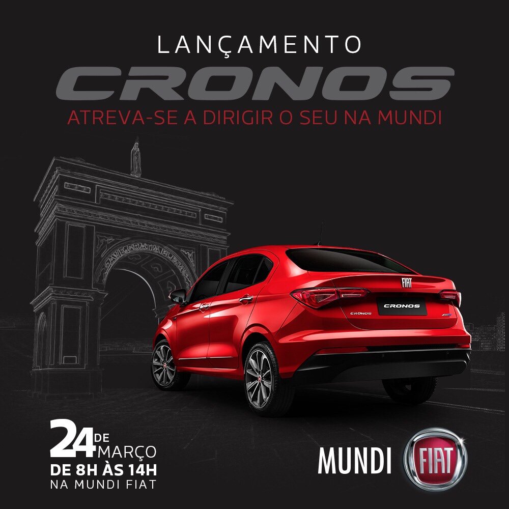 O Fiat Cronos será apresentado ao público da Região Norte oficialmente no próximo sábado (24/03), a partir das 8h, através da concessionária Mundi Fiat, todos os detalhes do veículo serão revelados.