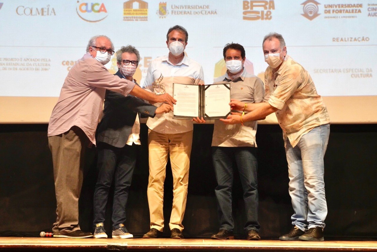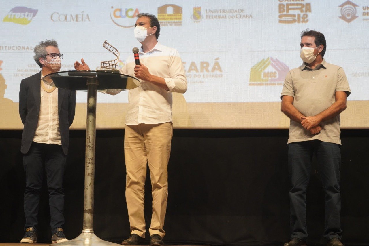 O anúncio se deu junto à entrega do troféu Eusélio Oliveira entregue pelo cineasta Rosemberg Cariry ao governador, com os aplausos para o audiovisual cearense na noite de premiações e encerramento do 31º Cine Ceará – Festival Iberoamericano de Cinema. Depois de uma semana, foi hora de se despedir do festival que esteve em cartaz no Cineteatro São Luiz e Cinema do Dragão. O encerramento contou com a exibição do mais novo longa-metragem de Karim Aïnouz, “Marinheiro das montanhas”, aplaudido por 15 minutos no Festival de Cannes.