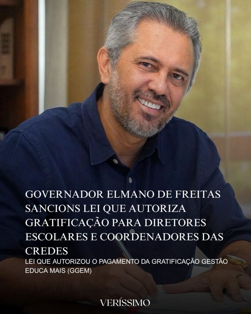 O governador Elmano de Freitas sancionou, nesta quarta-feira (28), lei que autorizou o pagamento da Gratificação Gestão Educa Mais (GGEM) para 782 diretores escolares e 23 coordenadores regionais de desenvolvimento da educação. Os profissionais da educação cearense receberão, mensalmente, o valor de R$ 2 mil a partir do próximo dia 1º de agosto. O investimento, por ano, será de R$ 19,85 milhões.