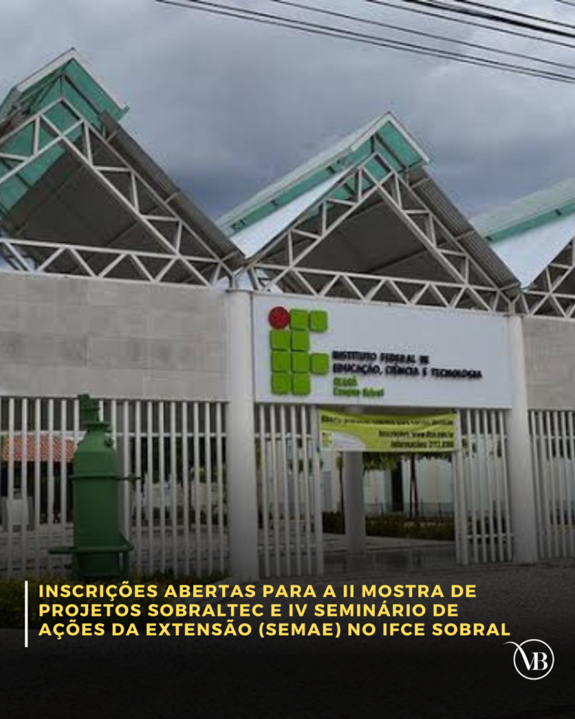 O Instituto Federal de Educação, Ciência e Tecnologia do Ceará (IFCE), campus Sobral, abriu inscrições para a II Mostra de Projetos – SOBRALTEC e para o IV Seminário de Ações da Extensão – SEMAE. Os eventos, que integram a programação do Universo IFCE, são destinados a estudantes de instituições públicas e privadas, dos níveis fundamental, médio, técnico e superior, de Sobral e cidades vizinhas.