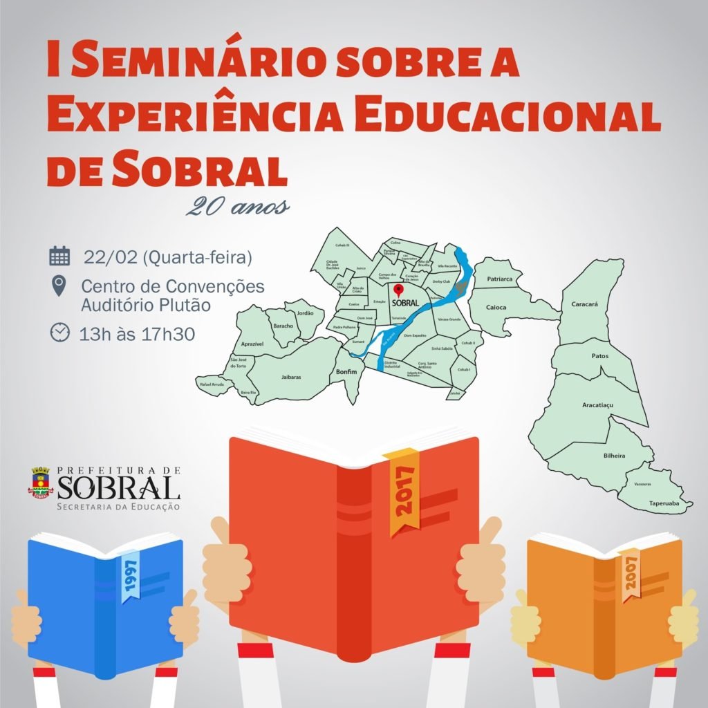 A Secretaria da Educação de Sobral (Seduc) promoverá, na quarta-feira, dia 22 de fevereiro, o I Seminário sobre a Experiência Educacional de Sobral. O evento é voltado para secretários de educação, prefeitos, vereadores, educadores, professores e acadêmicos de todo o Brasil, interessados em conhecer o modelo educacional de Sobral. O evento será realizado no auditório Plutão do Centro de Convenções de Sobral, das 13h às 17h30.