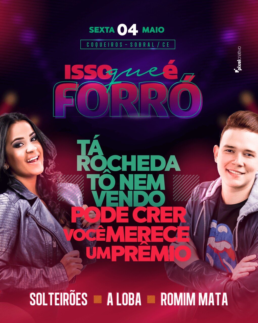 Essa é oportunidade para quem não quer perder essa mega festa de Forró Romântico. A Loba, Solteirões e Romim Mata, no próximo dia 04 de maio, no Coqueiros Club. Os ingressos podem ser adquiridos na Farmácia O Rodolfo, GG Cosméticos, Restaurante o Valdeci e Puro Açaí.