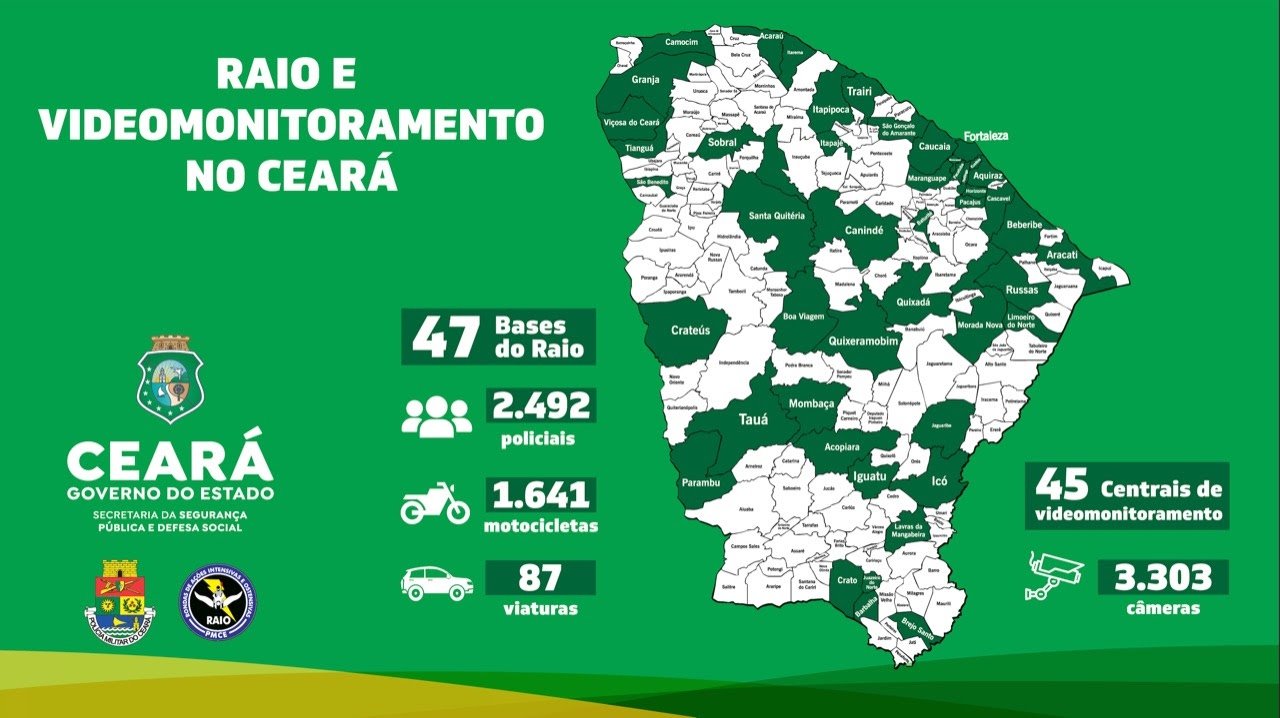 Criado em 2004, o policiamento especializado CPRaio se caracteriza pela mobilidade, flexibilidade, agilidade e precisão com o uso de motocicletas no combate ao crime. Atualmente, o Raio conta com 2.492 policiais militares atuando em 47 bases, com auxílio de 1.641 motocicletas e 87 viaturas. Além da Capital, são 12 bases na RMF e 34 no Interior.