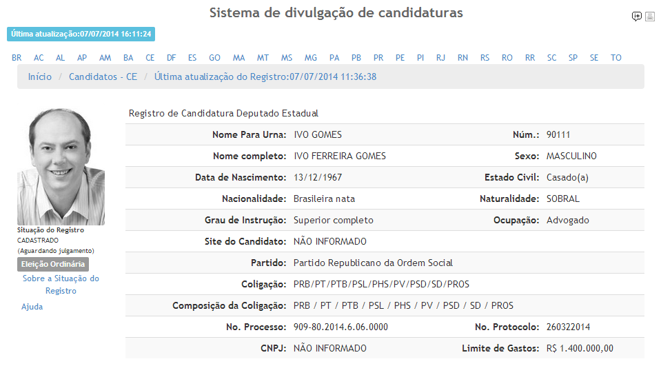 Confirmada a homologação da candidatura de Ivo Gomes a deputado estadual. Em Sobral, Ivo tem como principal apoiador o prefeito da cidade, Veveu Arruda. Ivo Gomes também conta com a parceria do candidato à Câmara Federal, o ex-ministro dos portos, Leônidas Cristino.