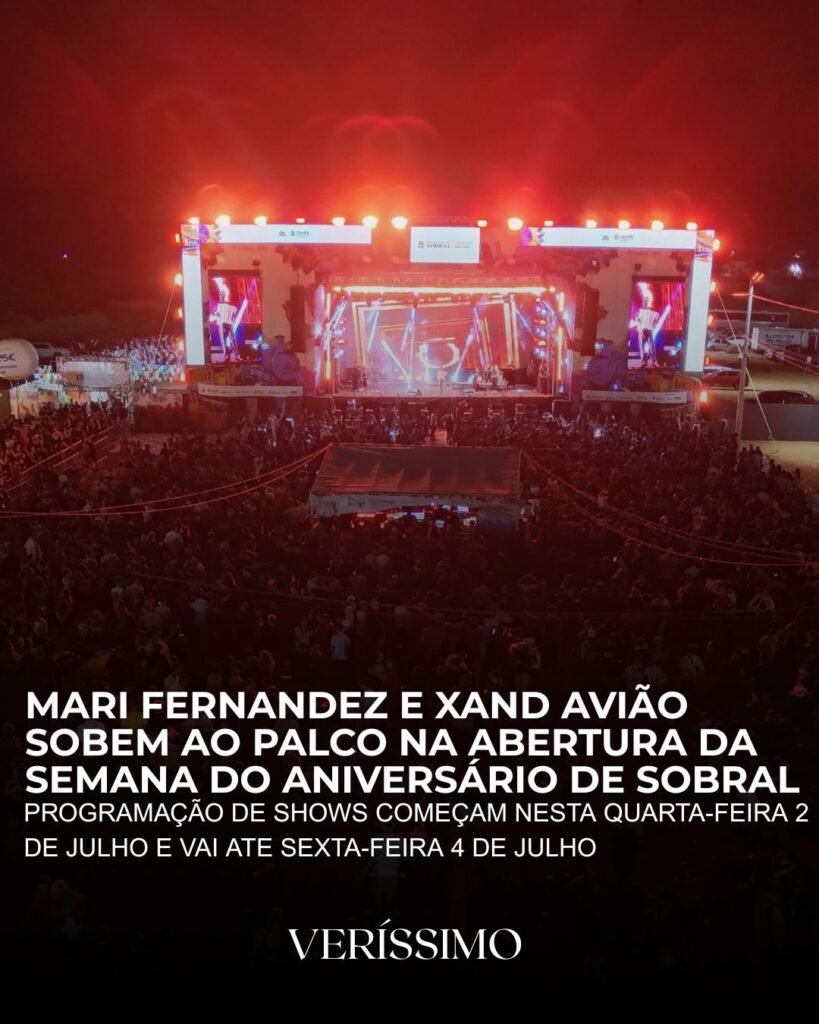 Mari Fernandez, Xand Avião e Lucca Medeiros subirão ao palco na quarta-feira, 02 de julho. A programação seguirá na quinta-feira, 3 de julho, com Stephany Lima, Léo Foguete e Zé Vaqueiro. O aniversário de Sobral terá shows de Calcinha Preta, Claudia Leitte e Henry Freitas.