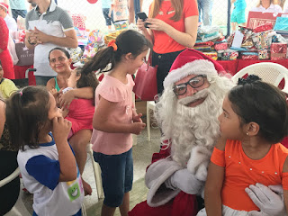 Durante as entregas, as crianças se emocionaram com os presentes e a com a presença ilustre do Papai Noel.