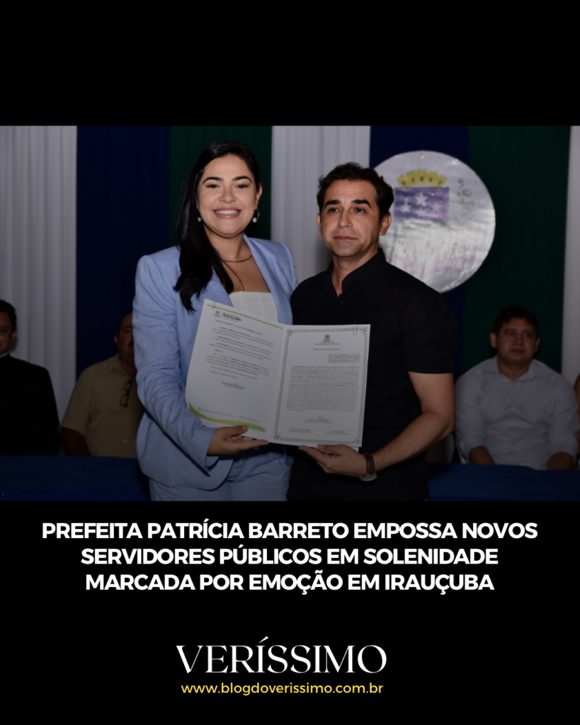 Em Irauçuba, a prefeita Patrícia Barreto realizou a posse dos novos servidores públicos efetivos do município em uma solenidade marcada por emoção e valorização do serviço público. O evento contou com a apresentação da Banda de Música Municipal Mestre Vino, além da presença de vereadores, lideranças religiosas e autoridades locais, reforçando a união entre os poderes e a comunidade.