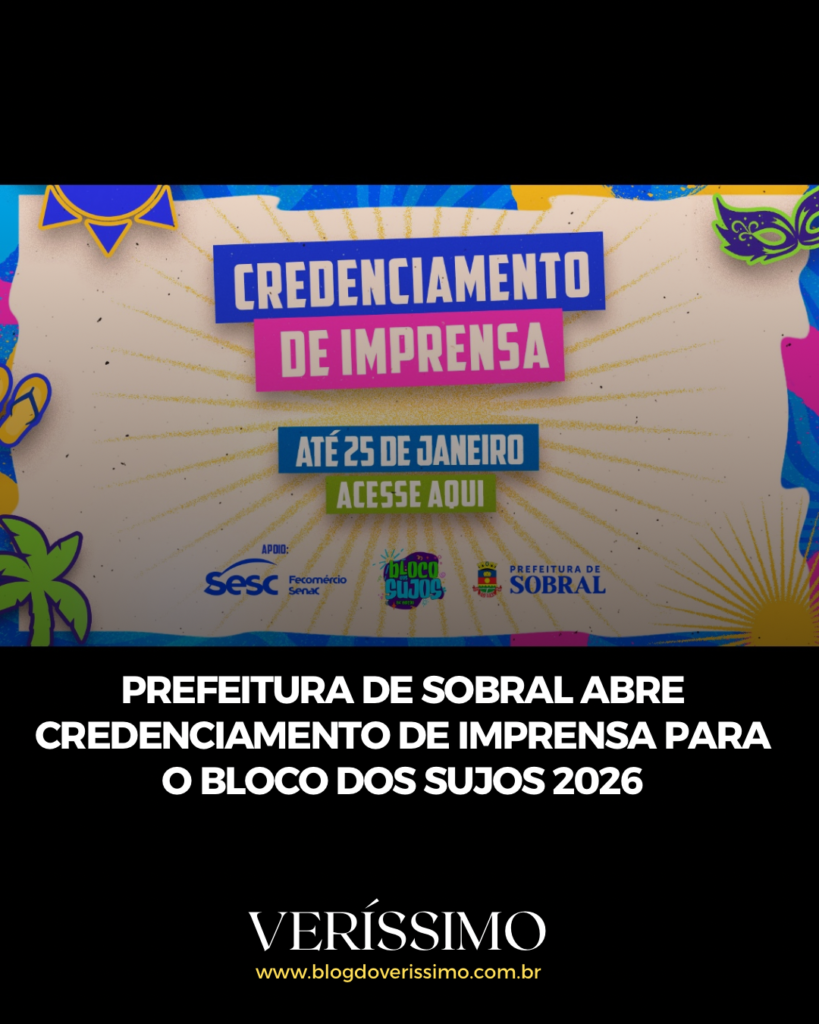 A Prefeitura de Sobral abriu o credenciamento de imprensa para a cobertura do Bloco dos Sujos 2026. O processo será realizado exclusivamente por meio de preenchimento de formulário virtual até o dia 25 de janeiro.