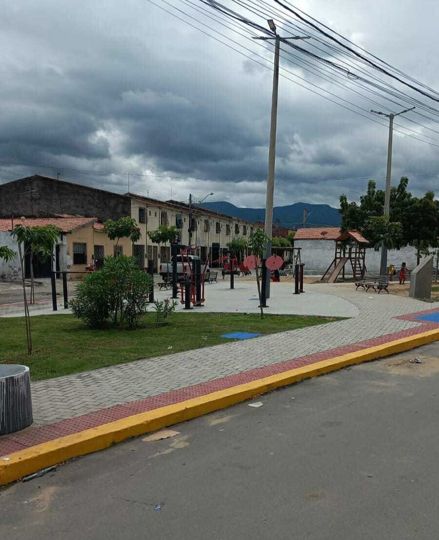 Já a requalificação da praça contemplou piso intertravado, industrial e podotátil, academia, playground, bancos de madeira, lixeiras, rampas de acessiblidade e iluminação em led. A área total é de 606m².