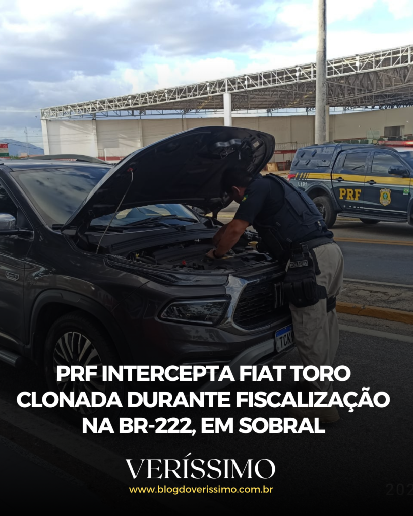 A Polícia Rodoviária Federal (PRF) recuperou, na tarde deste sábado (24), uma caminhonete clonada durante fiscalização de rotina na BR-222, em Sobral, na região Norte do Ceará. A ação ocorreu no km 221 da rodovia e resultou na apreensão de uma Fiat Toro Ranch 2025, com sinais de identificação adulterados, reforçando o trabalho de combate ao crime organizado e à circulação de veículos roubados nas rodovias federais.
