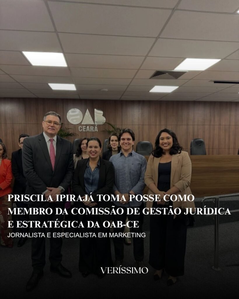A jornalista e especialista em marketing jurídico Priscila Ipirajá, diretora da Agência Planner, passou a integrar oficialmente a Comissão de Gestão Jurídica e Estratégica da OAB Ceará como membro consultivo, em cerimônia realizada na última semana na sede da Ordem.