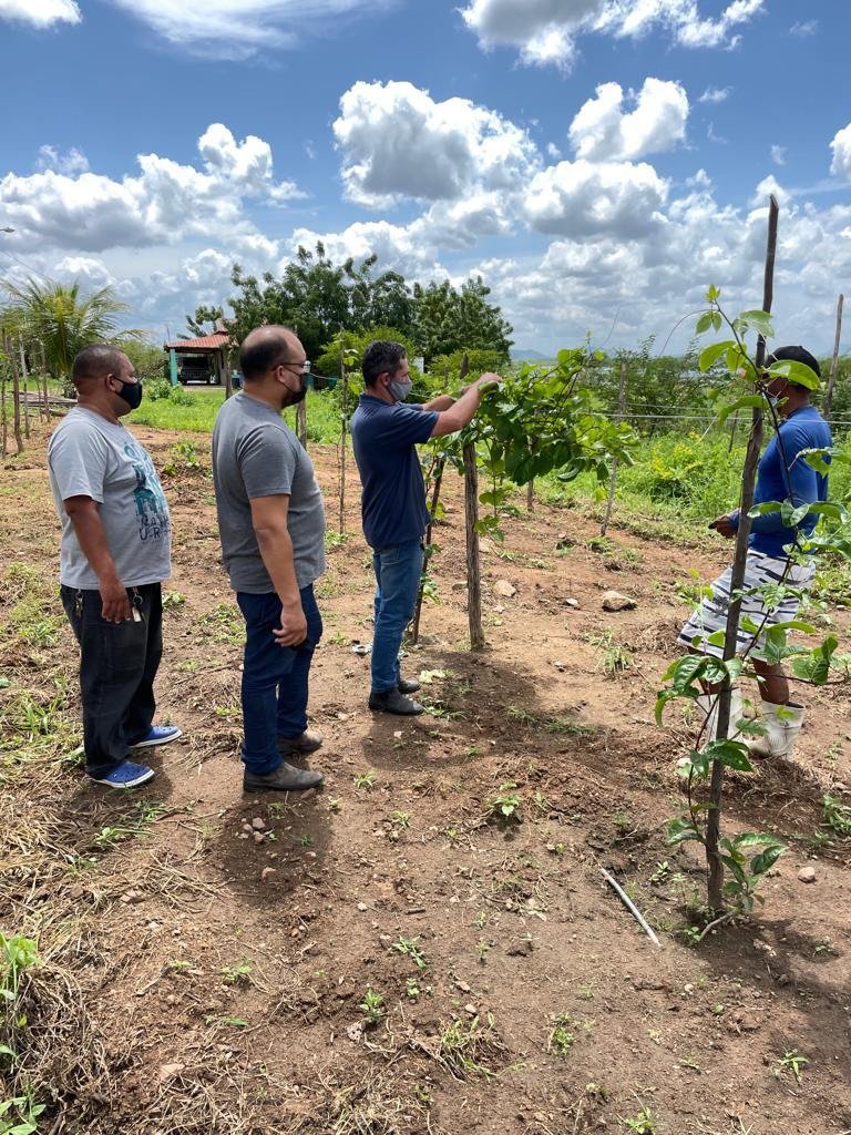 Durante a visita de Assistência Técnica e Extensão Rural (ATER), os produtores foram orientados sobre o uso de esterco de gado, material usado para a fertilização do solo, e sobre a poda adequada para o desenvolvimento dos frutos.