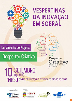 Com o objetivo de acentuar o protagonismo juvenil, por meio das diversas linguagens da economia criativa, o Projeto Despertar Criativo será lançado às 14h30, na próxima quinta-feira, 10, no Centro de Educação a Distância do Ceará (CED), durante a 8ª edição do programa Vespertinas da Inovação.