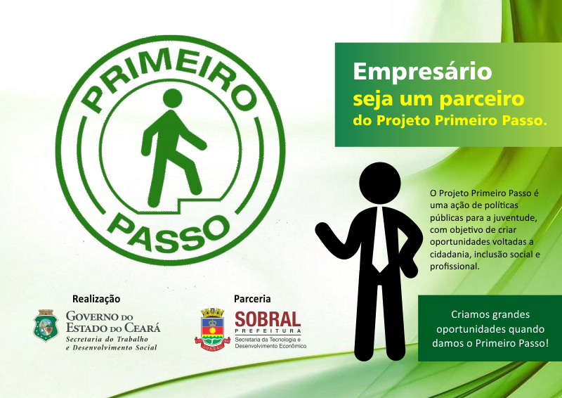 O Primeiro Passo é desenvolvido pelo Governo do Estado do Ceará, através da Secretaria do Trabalho e Desenvolvimento Social (STDS) e, em Sobral, conta com a parceria da Prefeitura, por meio da Secretaria da Tecnologia e Desenvolvimento Econômico (STDE).