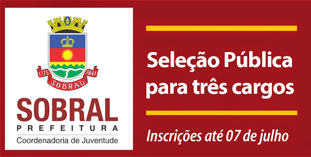A Coordenadoria de Juventude da Prefeitura de Sobral informa que o prazo para inscrição na seleção pública para contratação temporária e formação de cadastro de reserva para o ‘Projeto Viver Jovem no Tom da Participação’ foi prorrogado. Os interessados terão até o próximo dia 7 de julho para se inscrever.