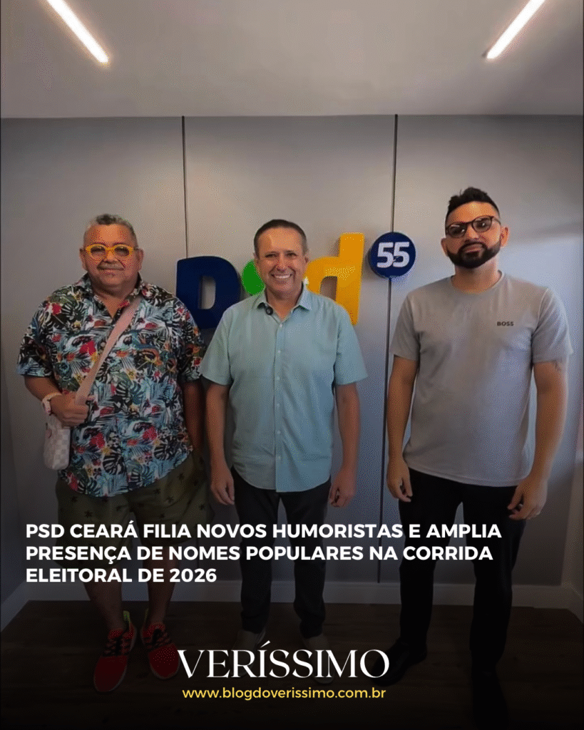 O presidente do PSD Ceará, Domingos Filho — que também ocupa o cargo de secretário do Turismo do Estado — oficializou, nesta segunda-feira (29), a filiação de mais dois humoristas cearenses ao partido: Paulo Sérgio (o popular Seu Sérgio) e Carlos Roberto, conhecido como Roberto Rizzo. A cerimônia ocorreu na sede estadual da legenda, em Fortaleza, reforçando a estratégia do PSD de ampliar sua presença nas redes sociais e de se aproximar de públicos que influenciam cultura, comunicação e opinião pública.