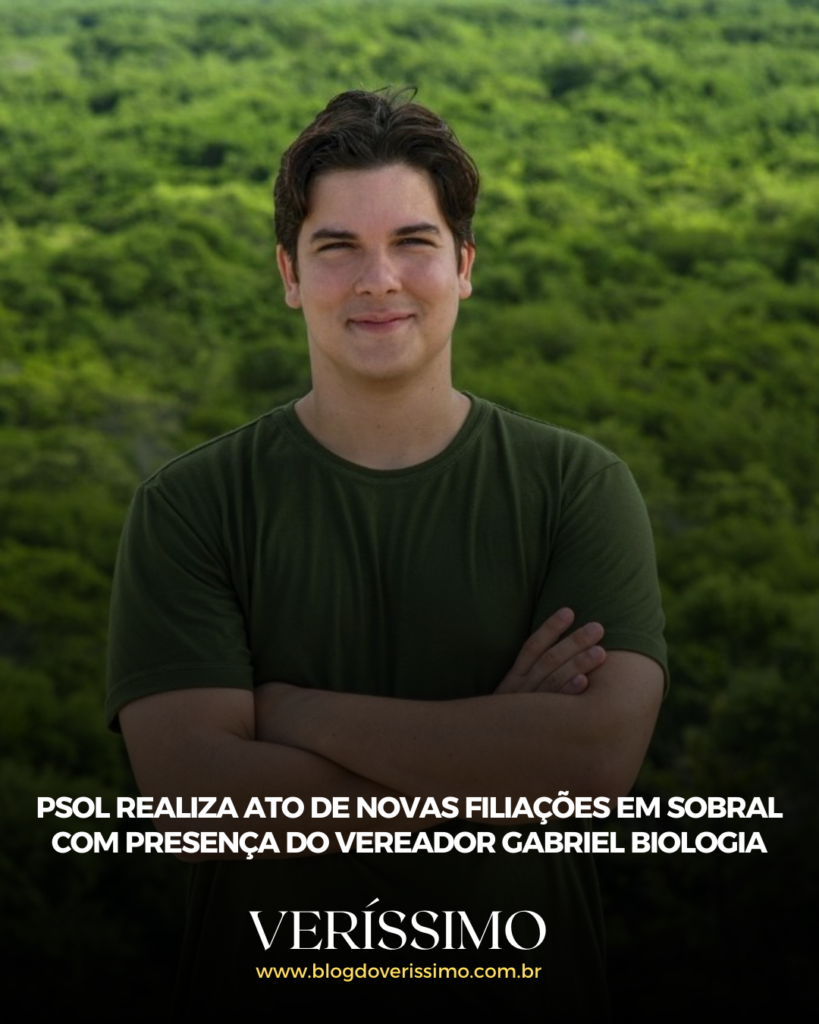 No próximo sábado (7), o Partido Socialismo e Liberdade (PSOL) realiza a solenidade de novas filiações em Sobral, reforçando a presença da legenda no interior do Ceará. O evento contará com a participação do vereador de Fortaleza, Gabriel Biologia, e acontecerá na Câmara Municipal de Sobral, a partir das 9h, reunindo militantes, simpatizantes e lideranças políticas da região.
