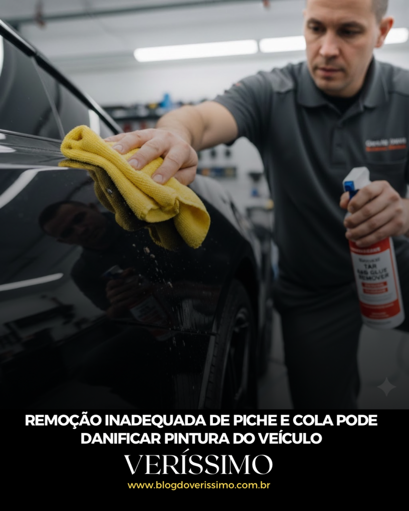 A orientação técnica é iniciar o processo com uma lavagem completa para eliminar partículas soltas e, em seguida, aplicar removedores próprios para piche e cola, facilitando a remoção com pano de microfibra e movimentos suaves. O uso de solventes domésticos ou produtos agressivos pode até gerar resultado imediato, mas compromete a proteção da pintura e reduz sua durabilidade. Após a limpeza, a aplicação de ceras ou selantes é indicada para restaurar a proteção, ajudar na manutenção e valorizar o veículo, reforçando a importância do cuidado correto na conservação automotiva.