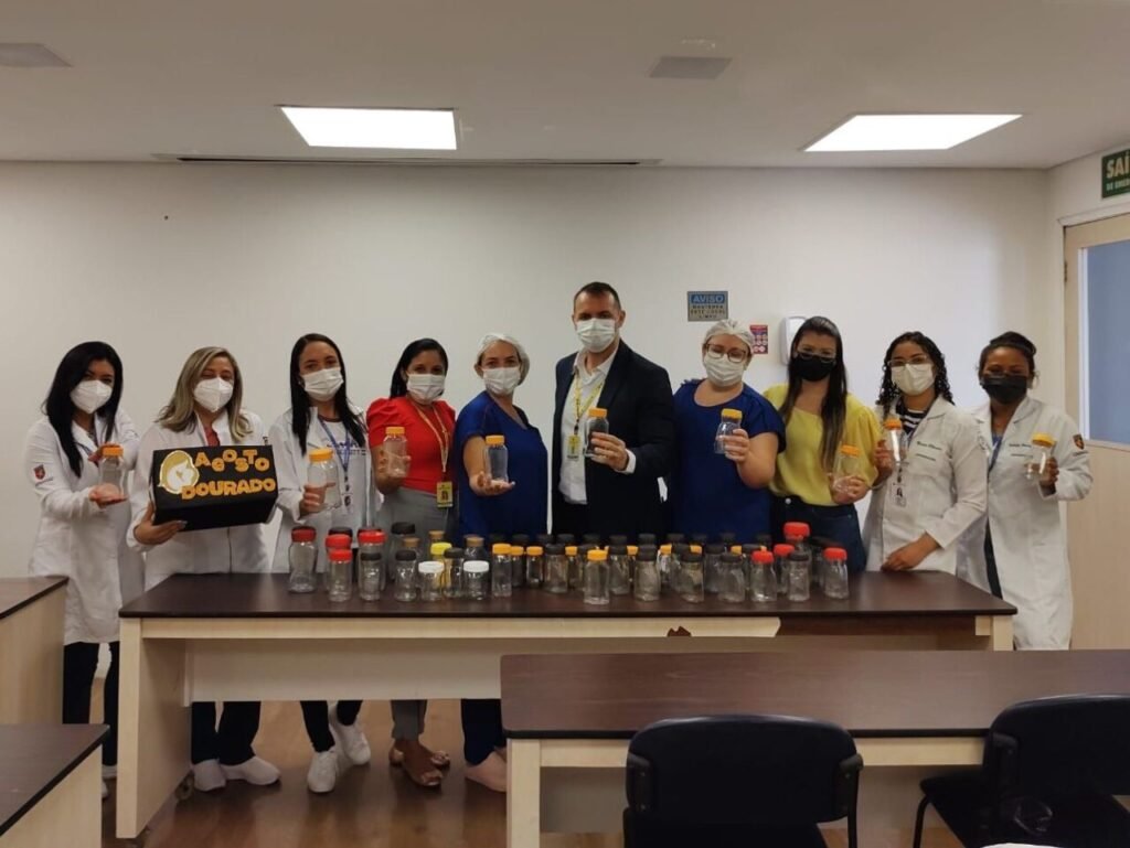 A Santa Casa de Misericórdia de Sobral (SCMS) recebeu na quinta-feira (22/09) a doação de 78 frascos de vidro com tampas de plástico dos acadêmicos do curso de Enfermagem do Centro Universitário Maurício de Nassau (Uninassau). A arrecadação dos frascos – que servem para o armazenamento correto do leite materno doado – foi fruto da campanha do Agosto Dourado junto às turmas do 6º e 7º semestre das disciplinas Cuidado Integral à Saúde da Mulher e Cuidado Integral à Saúde do Recém-nascido e Criança, respectivamente. Na ocasião, a Faculdade anunciou o compromisso social, por meio do Diretor Prof. Jânder Magalhães, de adotar uma política de arrecadação de frascos durante o ano inteiro.