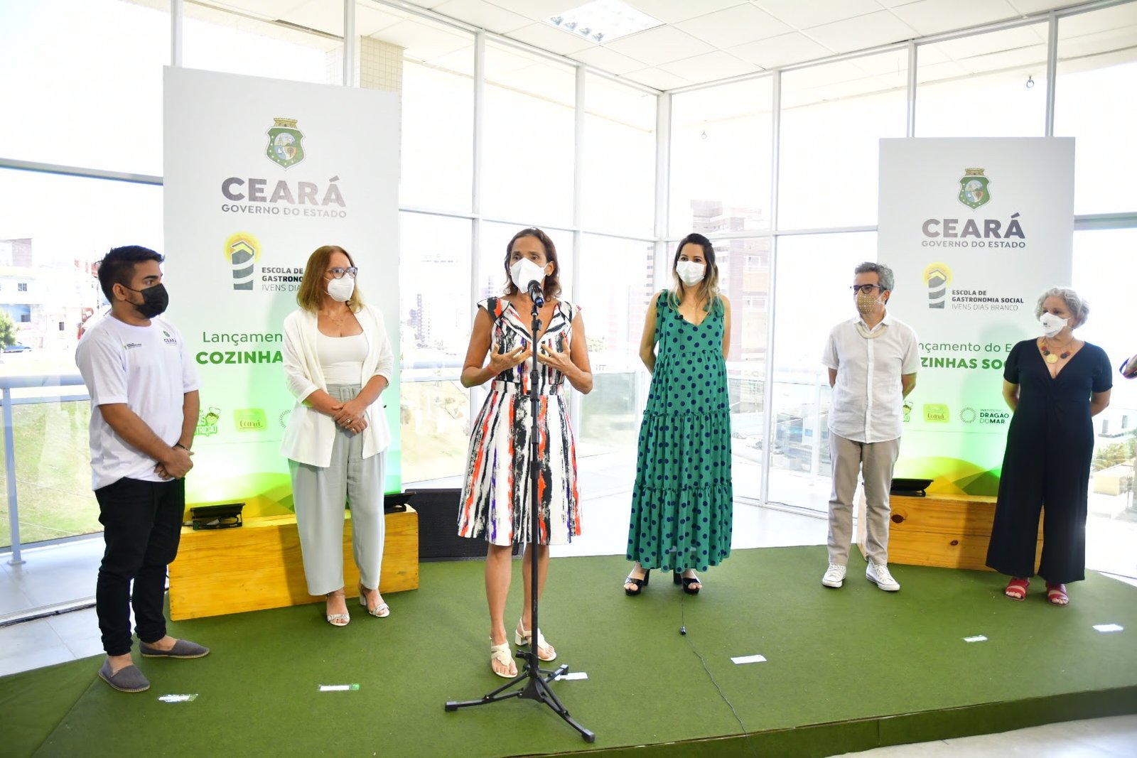 O Governo do Ceará lançou, nesta sexta-feira (27), o edital do processo seletivo da 2ª edição do programa Cozinhas Sociais durante solenidade virtual transmitida pelas redes sociais do Governo do Ceará. A formação visa apoiar dez instituições que já realizam trabalhos sociais em comunidades vulneráveis. O evento contou com as presenças da vice-governadora Izolda Cela; a primeira-dama do Ceará, Onélia Santana; o secretário de Cultura, Fabiano Piúba; a presidenta do Instituto Dragão do Mar (IDM), Rachel Gadelha; e a superintendente da Escola de Gastronomia Social Ivens Dias Branco, Selene Penaforte.