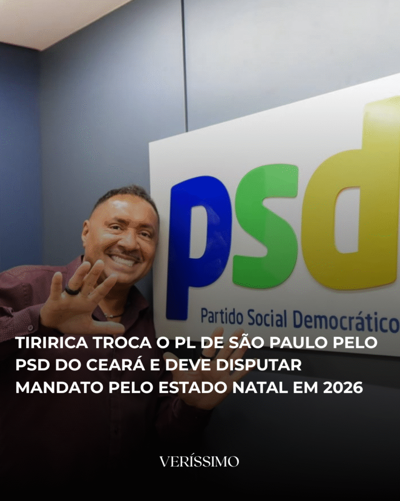 Natural de Itapipoca, no interior do Ceará, Tiririca já realizou a transferência de seu título eleitoral e deve disputar, em 2026, o quinto mandato como deputado federal, agora representando o PSD do Ceará. A mudança reforça o peso político da sigla no estado e reposiciona o deputado em seu território de origem, onde deve contar com o apelo popular que sempre marcou sua trajetória.