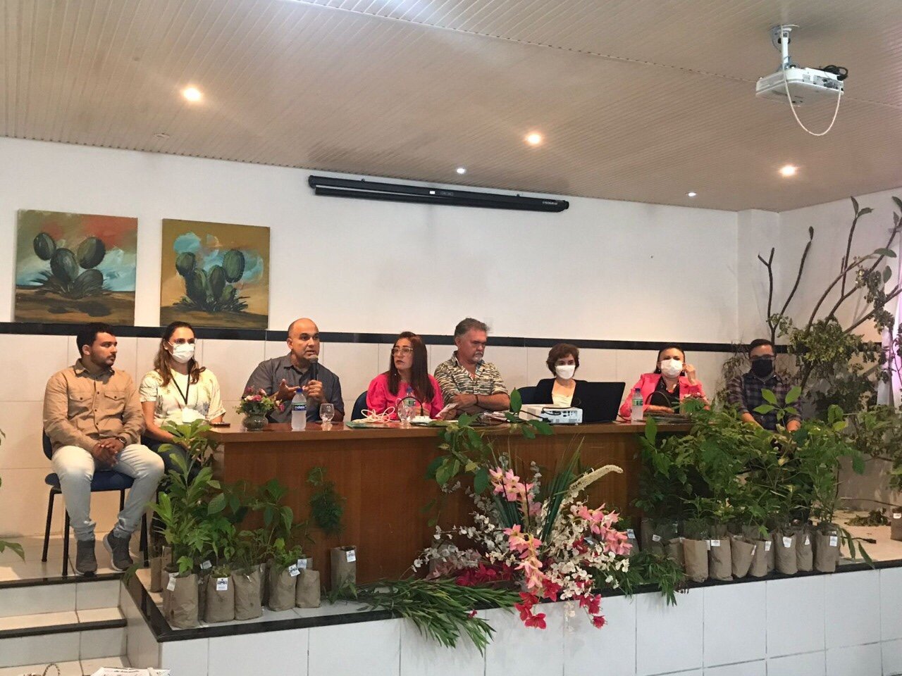 A mesa de abertura contou com presença do vice-reitor da UVA, professor Francisco de Carvalho; das pró-reitoras Jônia Tírcia Albuquerque (Graduação), Rebeca Sales (Extensão) e Cleidimar Rodrigues (Gestão de Pessoas); da diretora do Centro de Ciências Agrárias e Biológicas, Marlene Figueiredo; do professor Jander Barbosa Monteiro, representando o Sindicato dos Docentes da UVA (SINDIUVA); e do presidente do Centro Acadêmico do Curso de Ciências Biológicas da UVA, Israel Rodrigues.
