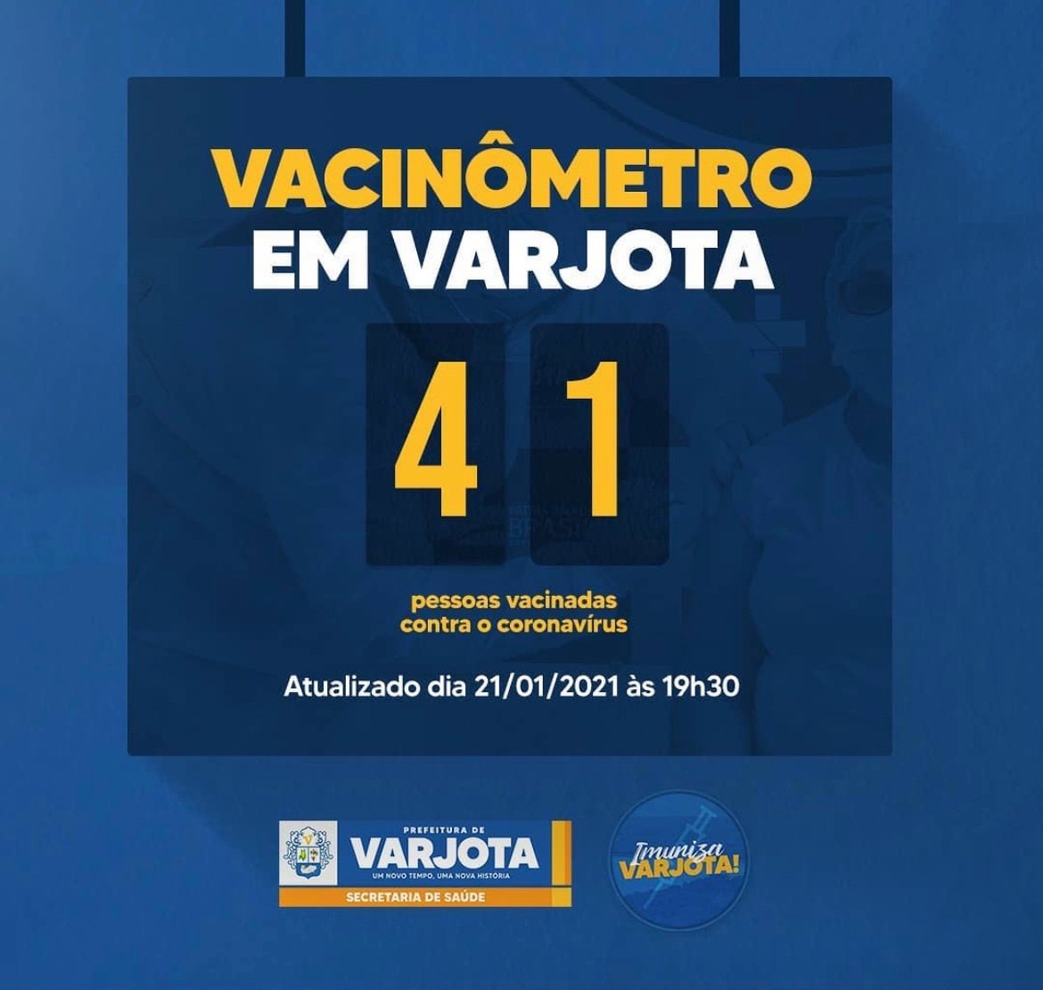 Para garantir a transparência dos dados relacionados ao enfrentamento da pandemia em Varjota, a prefeitura lançou na quinta-feira (21/01) um “vacinômetro”. Através da ferramenta será possível acompanhar a evolução da campanha de vacinação contra a Covid-19 através de dados como o número de doses aplicadas. Até as 19h30 de ontem, 41 pessoas haviam recebido a primeira dose da Coronavac na cidade.