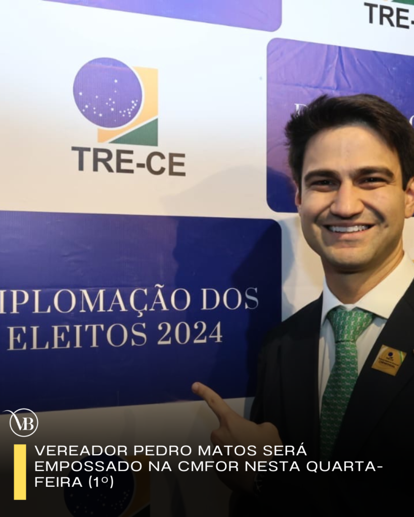 Pedro Matos (Avante), reeleito para a Câmara Municipal de Fortaleza nas eleições 2024, será empossado na próxima quarta-feira, dia 1º de janeiro, para mais um mandato como vereador da capital cearense. A solenidade de posse será realizada no plenário da Casa Legislativa, às 16h, reunindo parlamentares, autoridades, familiares e convidados.